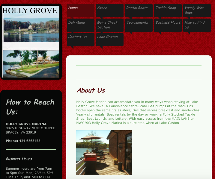 Holly Grove Marina can accommodate you in many ways when staying at Lake Gaston. We have; a Convenience Store, 24hr Gas pumps at the road, Gas Docks open the same hrs as a store, Deli that serves breakfast and sandwiches, Yearly slip rentals, Boat rentals by the day or week, a Fully Stocked Tackle Shop, Boat Launch, and Lottery. With easy access from the MAIN LAKE or HWY 903, Holly Grove Marina is a sure stop when at Lake Gaston