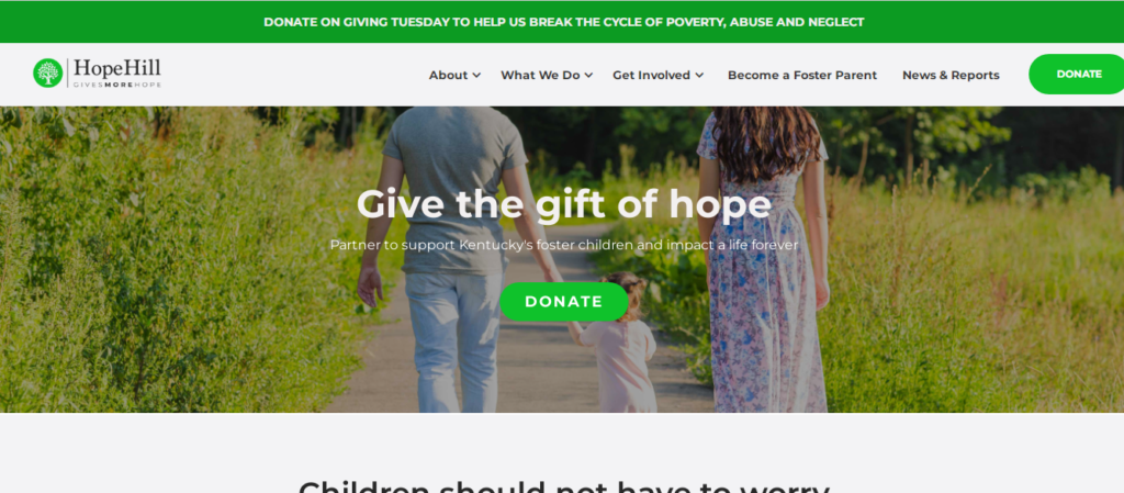 You can help change this. Partner with Hope Hill to provide care in safe, loving, and therapeutic environments to Kentucky’s most disadvantaged and vulnerable children and families.