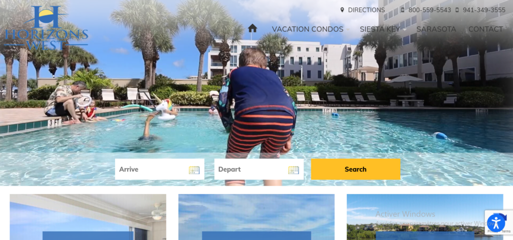 Located on world-renowned Crescent Beach, Horizons West offers an escape from the hustle and formality of commercialized vacation resorts. Our private section of beach is equipped with beach chairs and lounges for sunbathing; beach cabanas provide shade when you have had enough sun! Two swimming pools are located on the property and when you are weary after a hard day of shopping or playing, you can relax in our Jacuzzi.