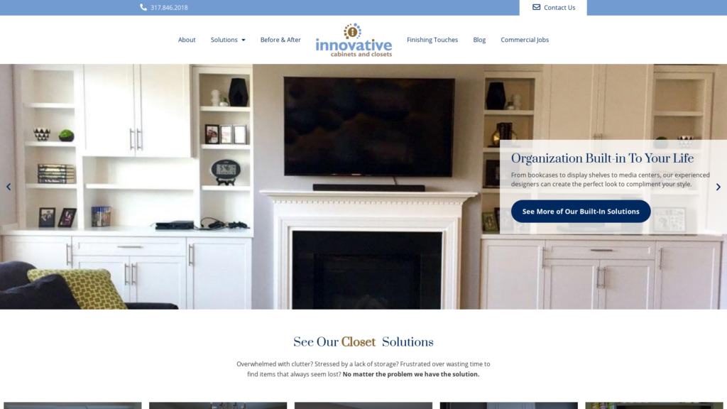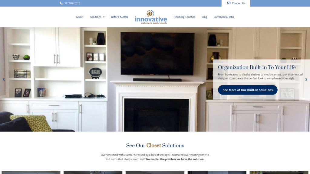 Since 1985, Innovative Cabinets & Closets is providing customized storage solutions for the home, office, bars, media centers and pantries with high-quality custom closets and cabinets in Indianapolis, Carmel, Fishers, and surrounding areas. Call now for a quote.