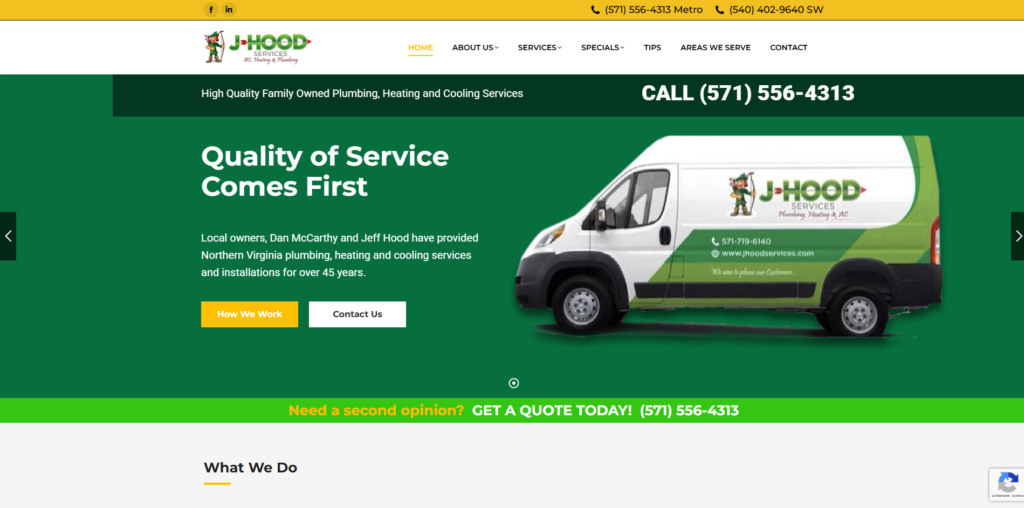 J Hood Services fleet of plumbing and HVAC service and installation professionals are prepared to solve your problems in a timely manner. Our respect for every single customer and high quality of service is evidenced by our A rating with the Better Business Bureau and outstanding reviews on Google and Thumbtack. We serve all of Northern Virginia’s residential and commercial heating, air conditioning and plumbing needs.