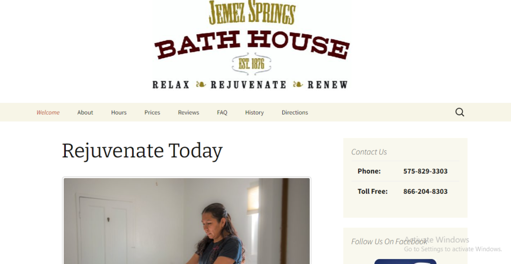 The Jemez Springs Bath House offers hot spring mineral baths, wraps and massage. Blanket or Herbal Wraps are available; both include a 25 minute bath. Customers can choose between a 30 minute, 60 minute & 90 minute massage. Chair massage is also available with a 10 minute min, 30 min max.