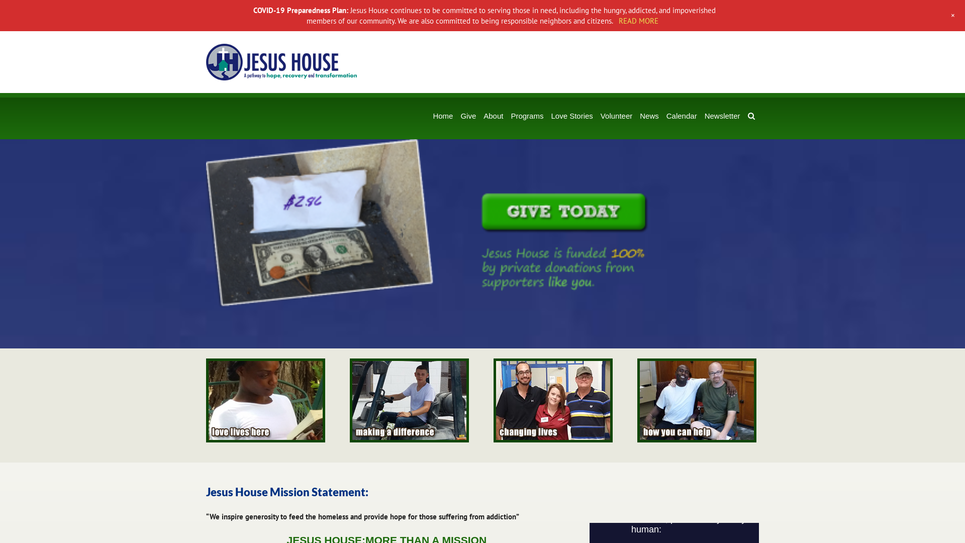 The Jesus House is a shelter, a mission and a shelter with a mission. We serve not only the homeless and near-homeless but also the economically depressed neighborhood where we are located. As many churches know, Jesus House is a conduit of Christian love for the homeless, mentally broken and poverty-stricken. We are a popular venue for churches and civic groups to perform service projects because our model of operation emphasizes the service of others where they are without conditions, barriers or judgment.