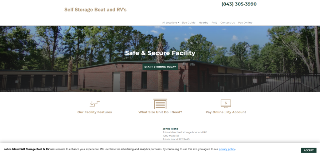 We’re able to accommodate a variety of storage needs at Johns Island Self Storage Boat & RV. Our facility is filled with climate-controlled self-storage units and outdoor parking spaces for RVs and boats. You can store with us short or long-term. Rent your unit online and start storing today!