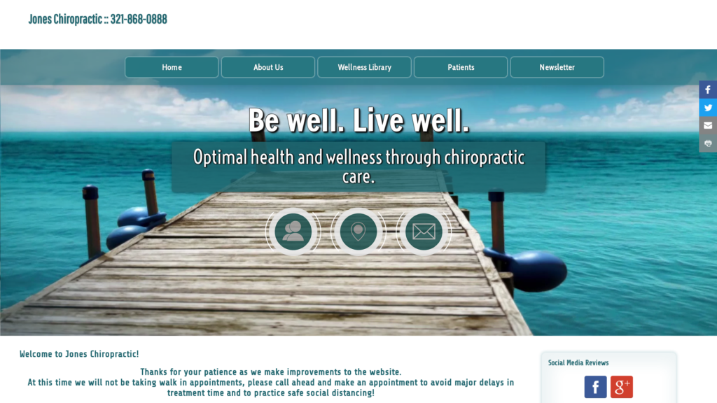 Dr. Liz has been in practice for 29 years and has treated everyone from newborn babies to geriatrics. She is a provider with many different insurance carriers including Medicare, Medicaid, Staywell, Wellcare, Magellan, BCBS, UHC, Humana, and more. The goal of Jones Chiropractic is to give you a lifestyle free of spinal subluxations and to be able to live pain-free so you can enjoy those lazy days on the beach. We hope to see you soon!
