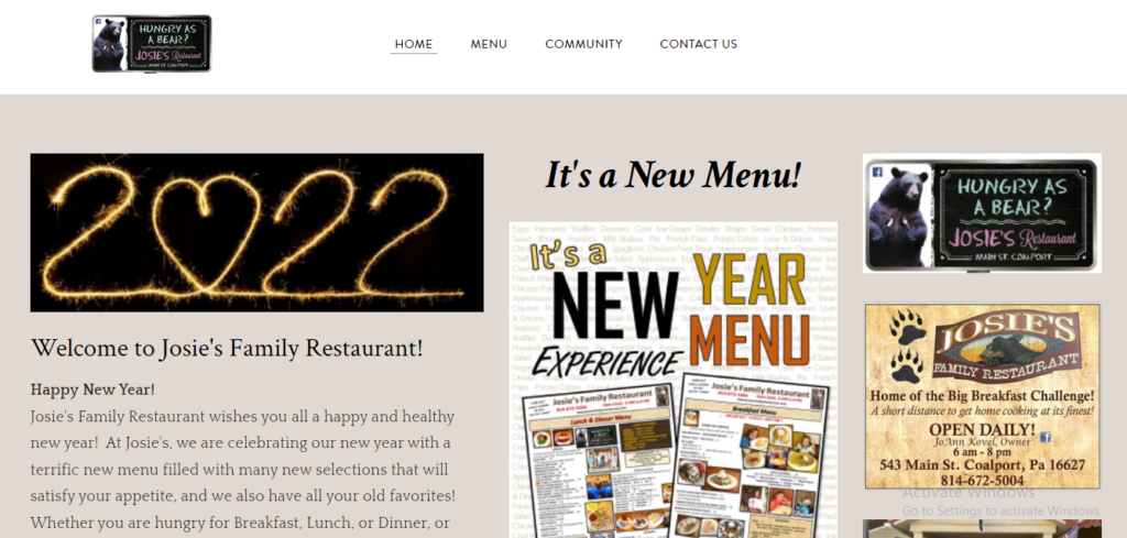 Josie’s Family Restaurant on Main Street in Coalport is the region’s favorite dining choice for those seeking a great traditional American Restaurant. At Josie’s, you will see many regulars for breakfast, lunch, dinner, or take out orders. Also, travelers and visitors to the Prince Gallitzin State Park and Glendale Lake make sure that a visit to Josie’s is included in their vacation or travel plans. Josie’s Restaurant hosts numerous community groups for their meetings and is a vital participant and sponsor for many local benefits, charities, and youth groups.