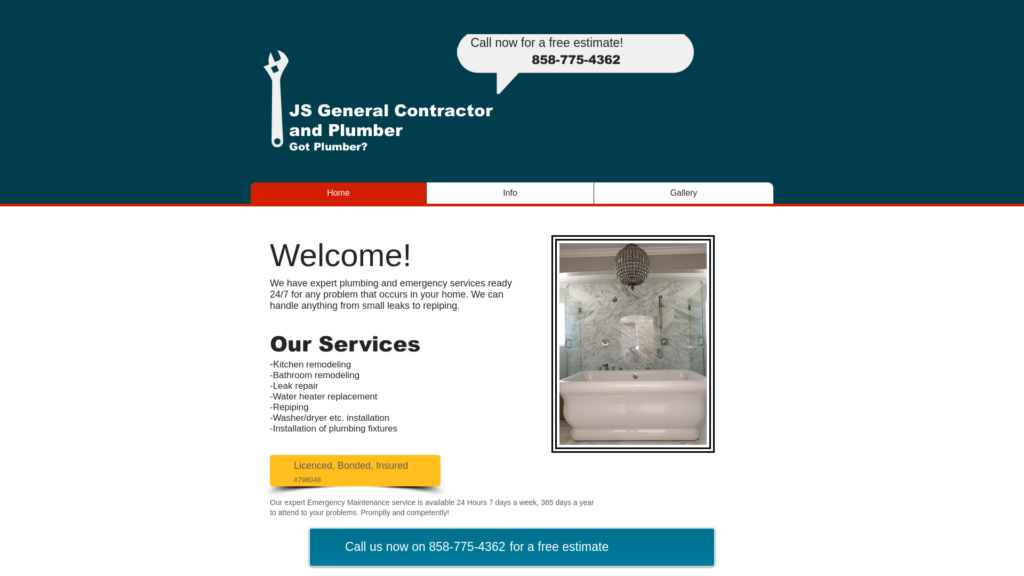Thank you for visiting Janos Stibla General Contractor and Plumbing. We have been providing fully licensed service to San Diego County since 2000.
