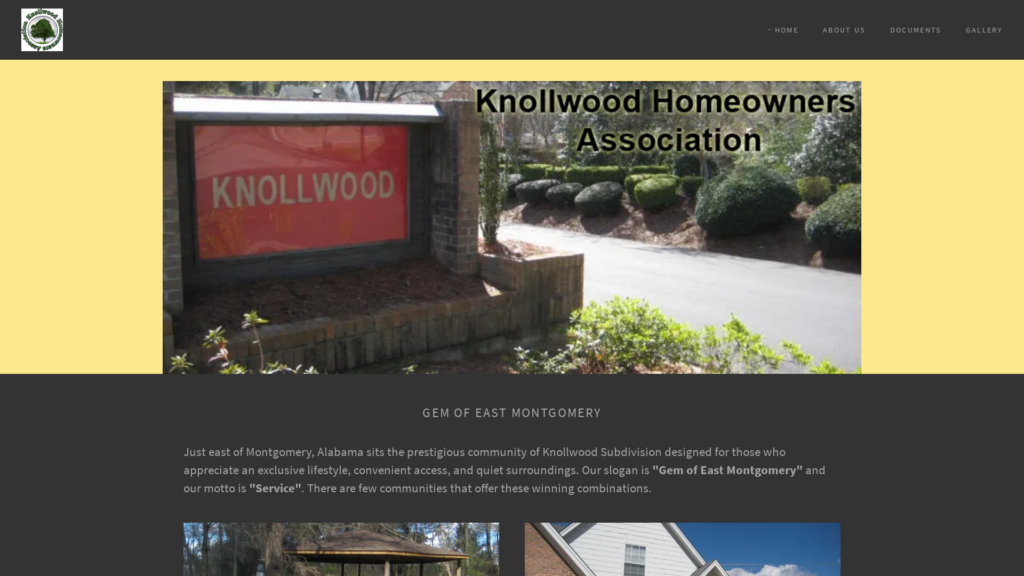 Just east of Montgomery, Alabama sits the prestigious community of Knollwood Subdivision designed for those who appreciate an exclusive lifestyle, convenient access, and quiet surroundings. Our slogan is “Gem of East Montgomery” and our motto is “Service”. There are few communities that offer these winning combinations.