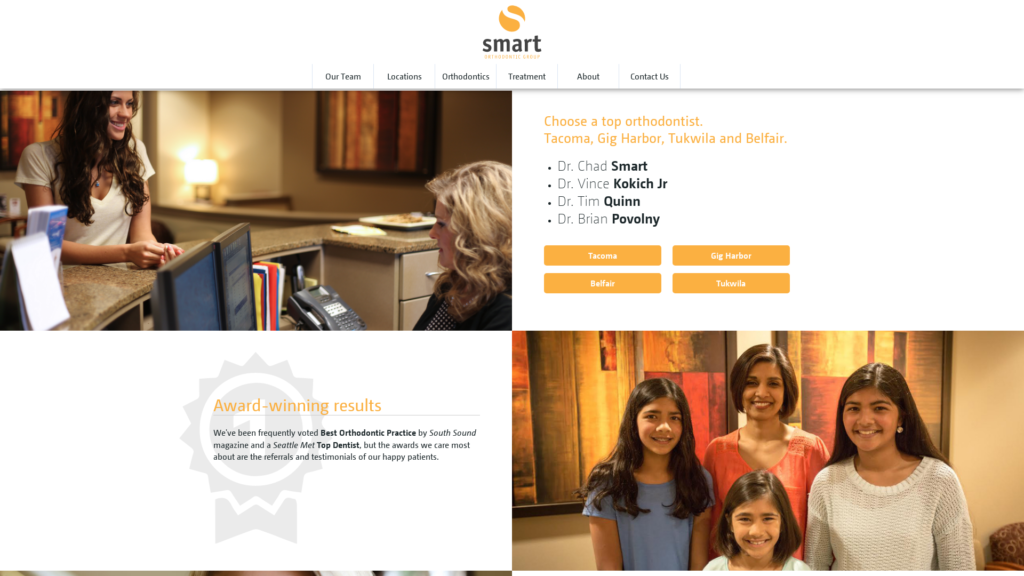 5 top orthodontists | Tacoma, Gig Harbor Belfair & Tukwila offices. Smart Orthodontic Group, led by Drs. Chad W. Smart, Vince Kokich Jr., Tim Quinn, Brian Povolny & Sam Finkleman specializes in Invisalign, ceramic braces,