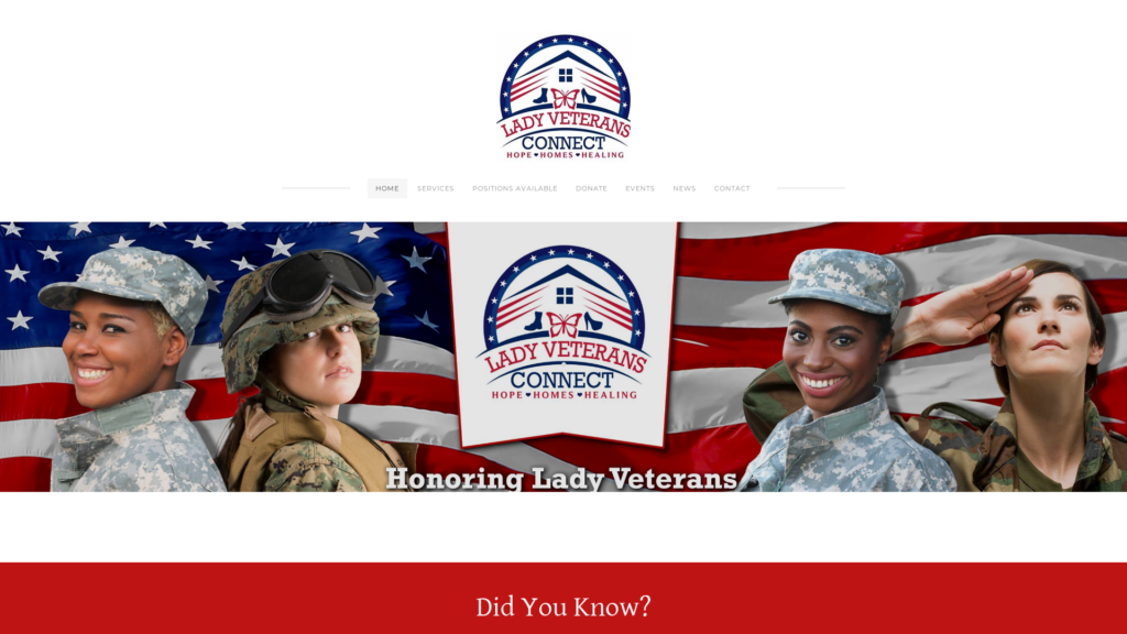 Phyllis Abbott originally operating as two organizations, Sheppard’s Hands and Lady Vets Connect made the decision to join forces to become Lady Veterans Connect, a 501(c)(3) organization, after realizing together they made a powerful team. Lady Veterans Connect streamlined the work of both entities into one to provide high-quality, comprehensive services to Lady Veterans to assist transitional support and prevent homelessness.