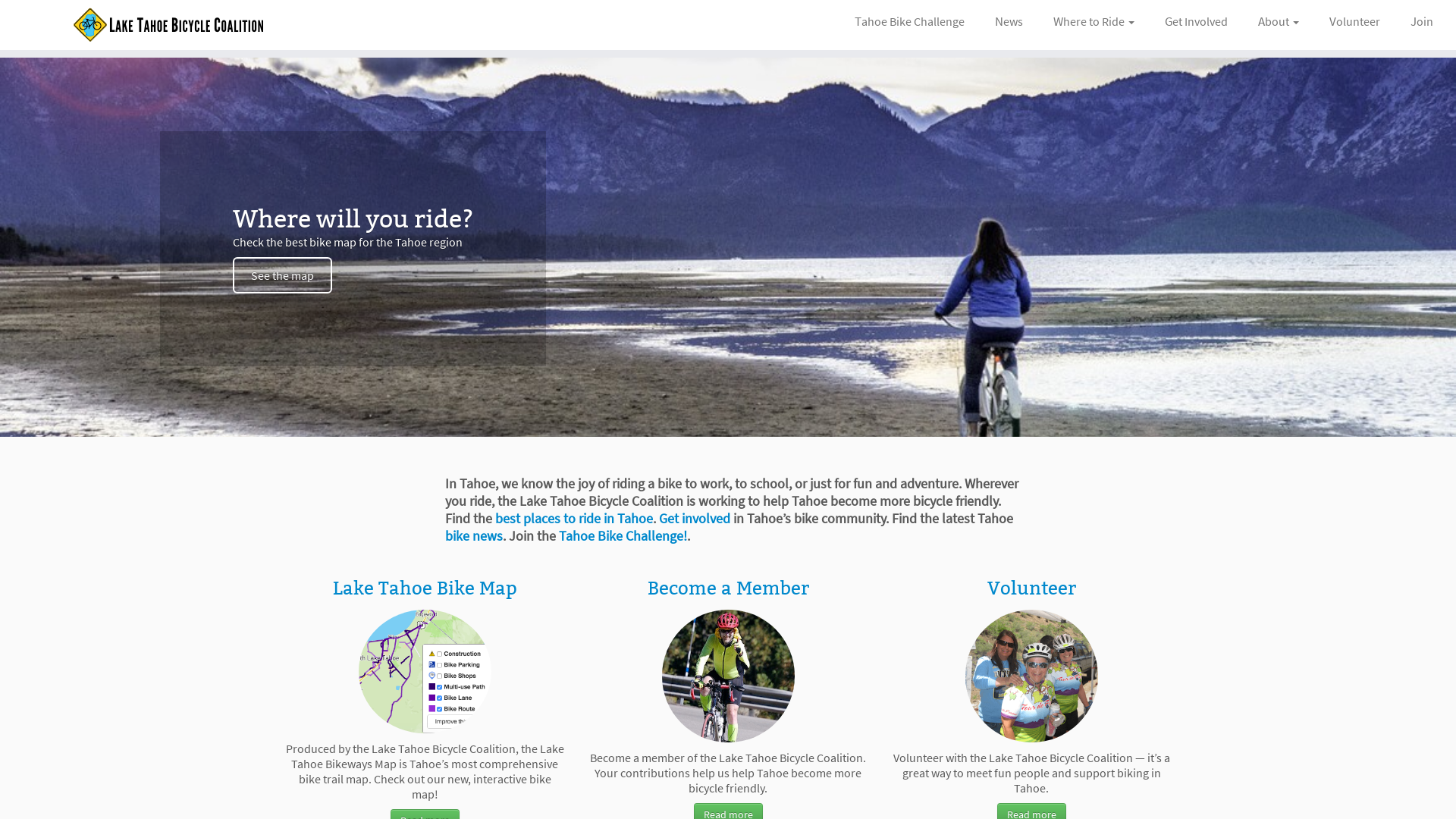The Lake Tahoe Bicycle Coalition's mission is to help Tahoe become more bicycle friendly. Find out where to ride in Tahoe and get details on bike events.