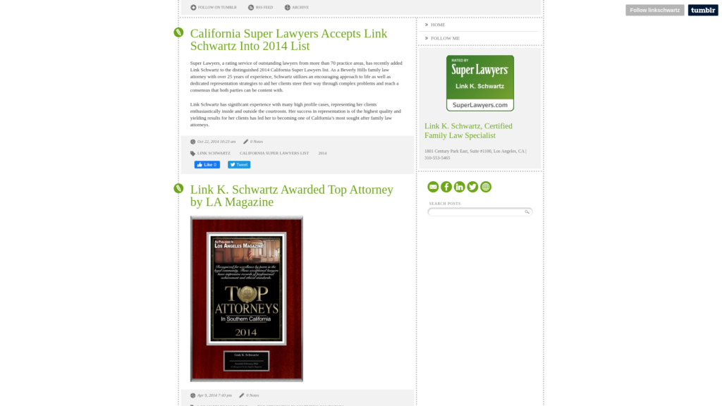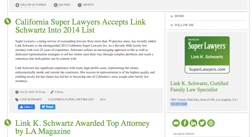 Super Lawyers, a rating service of outstanding lawyers from more than 70 practice areas, has recently added Link Schwartz to the distinguished 2014 California Super Lawyers list. As a Beverly Hills family law attorney with over 25 years of experience, Schwartz utilizes an encouraging approach to life as well as dedicated representation strategies to aid her clients steer their way through complex problems and reach a consensus that both parties can be content with.