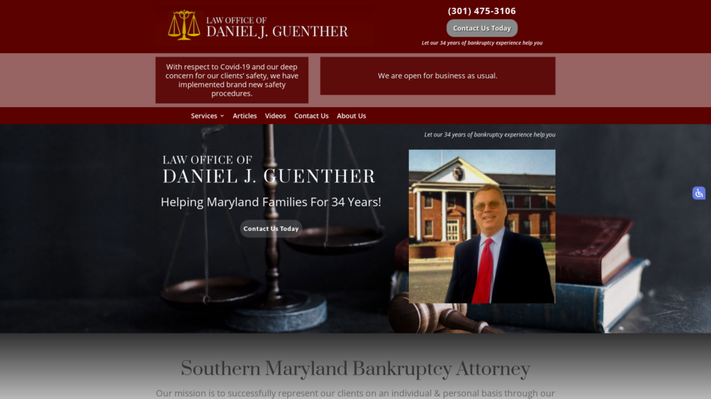 Daniel J. Guenther has successfully represented thousands of clients throughout Southern Maryland, including residents of Prince George’s, Charles, St Mary’s, and Calvert Counties.