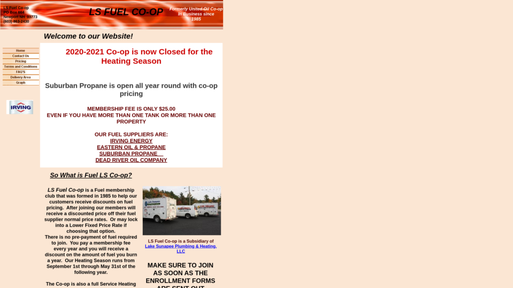 LS Fuel Co-op is a Fuel membership club that was formed in 1985 to help our customers receive discounts on fuel pricing. After joining our members will receive a discounted price of their fuel supplier’s normal price rates. Or may lock into a Lower Fixed Price Rate if choosing that option. There is no pre-payment of fuel required to join. You pay a membership fee every year and you will receive a discount on the amount of fuel you burn a year. Our Heating Season runs from September 1st through May 31st of the following year.