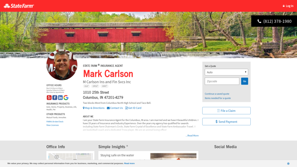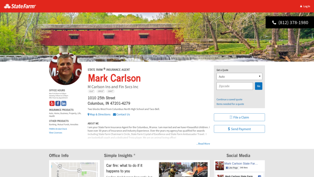 Call (812) 378-1980 for life, home, car insurance and more. Get a free quote from State Farm Agent Mark Carlson in Columbus, IN