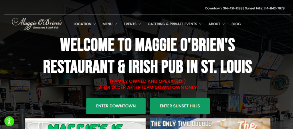 Maggie’s has always been a fan favorite for all St. Louis sports fanatics. With countless 75″ High Def screens, there’s never a bad seat in the house! Maggie’s also offers free parking and a shuttle service to take you to and from home games and events. With everything going on, you can be sure there will never be a dull moment at Maggie O’Brien’s Restaurant and Irish Pub in downtown St. Louis…we’ll see you here!