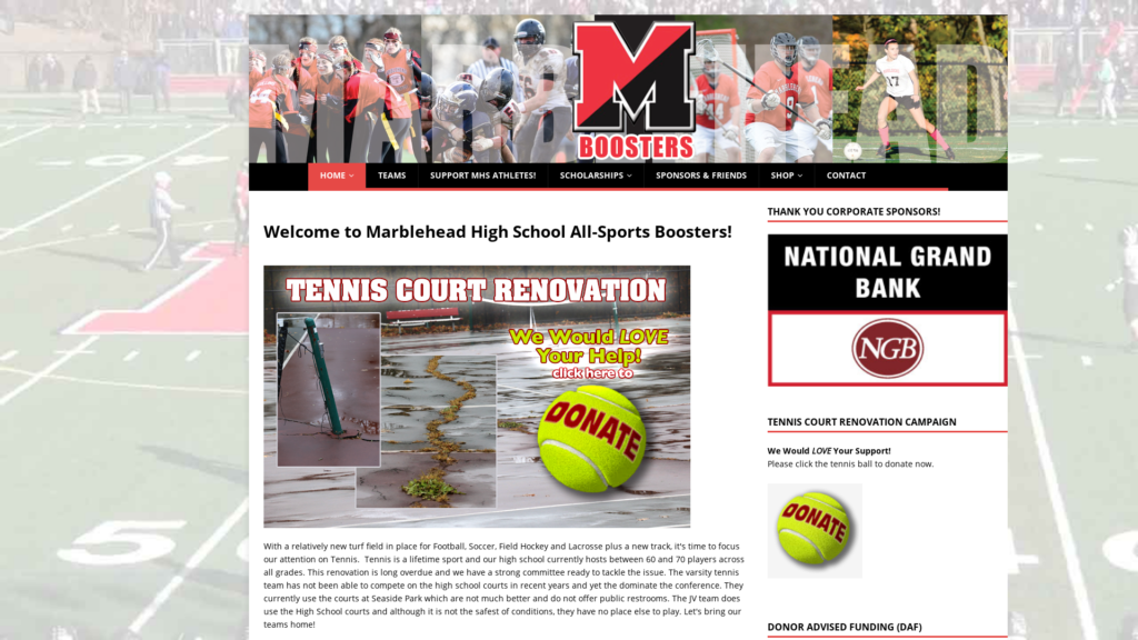 First, the Boosters would like to thank the businesses and parents in Marblehead and the surrounding communities for purchasing ads and Good Luck banners to inspire and cheer on our athletes and their teams.