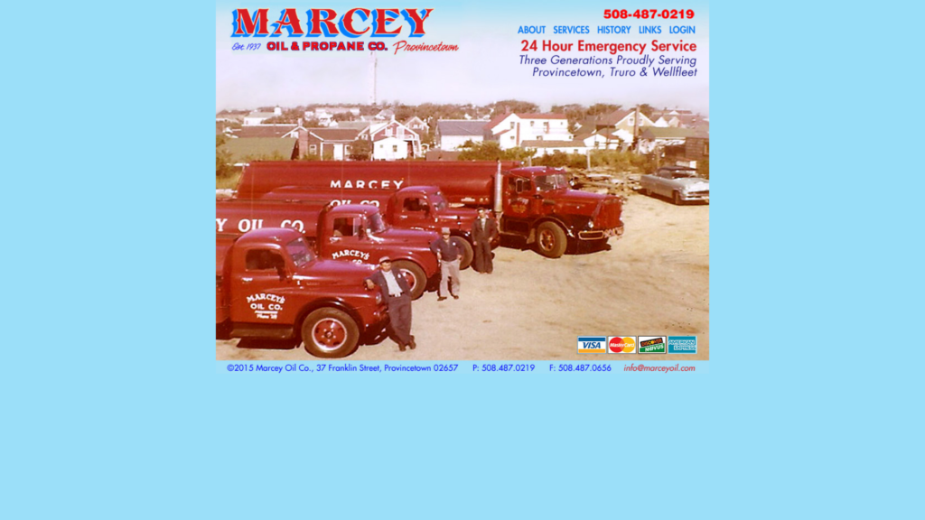Since 1937, Marcey Oil Company has been keeping the outer cape warm. It all began with my grandfather hand-carrying pails of kerosene and blocks of ice to his customers’ homes. Today, we deliver heating oil, propane, clear diesel, and marine/off-road diesel, and offer complete heating system installations, maintenance and conversions, with 24-hour emergency service and fuel delivery. I am so proud to see how my family’s business has grown, and of the integrity of my crew and staff, many of whom I grew up with. It is a pleasure and an honor to do business in this beautiful and diverse community, from our neighbors who started doing business with my father and grandfather, to town’s energetic and creative business owners, and the remarkable “wash-ashores” who bring with them unique stories and experiences from all over America and the world.
