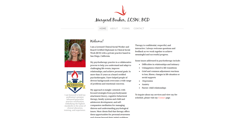 I am a Licensed Clinical Social Worker and Board Certified Diplomate in Clinical Social Work (BCD) with a private practice based in San Diego, California.