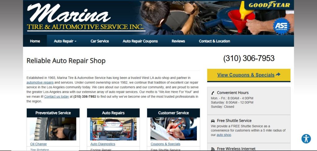 Established in 1965, Marina Tire & Automotive Service has long been a trusted West LA auto shop and partner in automative repairs and services. Under current ownership since 1982, we continue that tradition of excellent car repair service in the Los Angeles community today. We care about our customers and our community, and are proud to serve the greater Los Angeles area with our extensive array of auto repair services. Our motto is “We Are Here For You!” and we mean it!