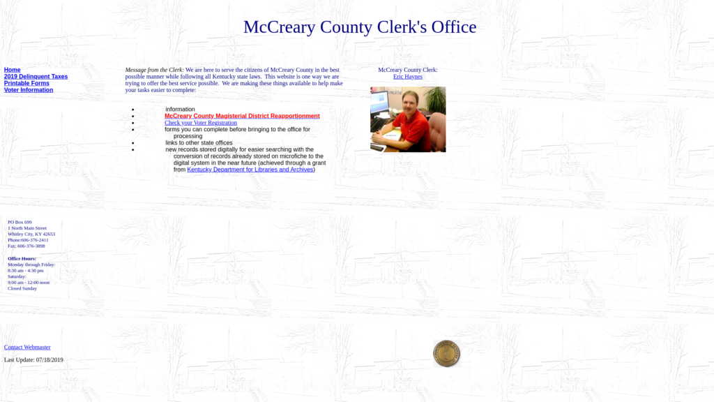 McCreary County Clerk; Eric Haynes; Whitley City, Kentucky;