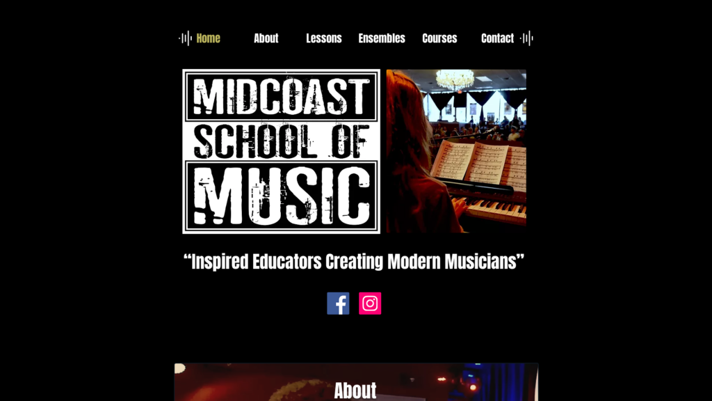 Midcoast School of Music is a full-service music school offering expert instruction on guitar, bass, drums, piano, voice, and horns. We continue on with hands-on, practical, real-world instruction through a varied program of ensembles as well as classroom-style courses in music theory and improvisation. We provide encouragement and guidance to help students develop discipline and confidence while making music fun.