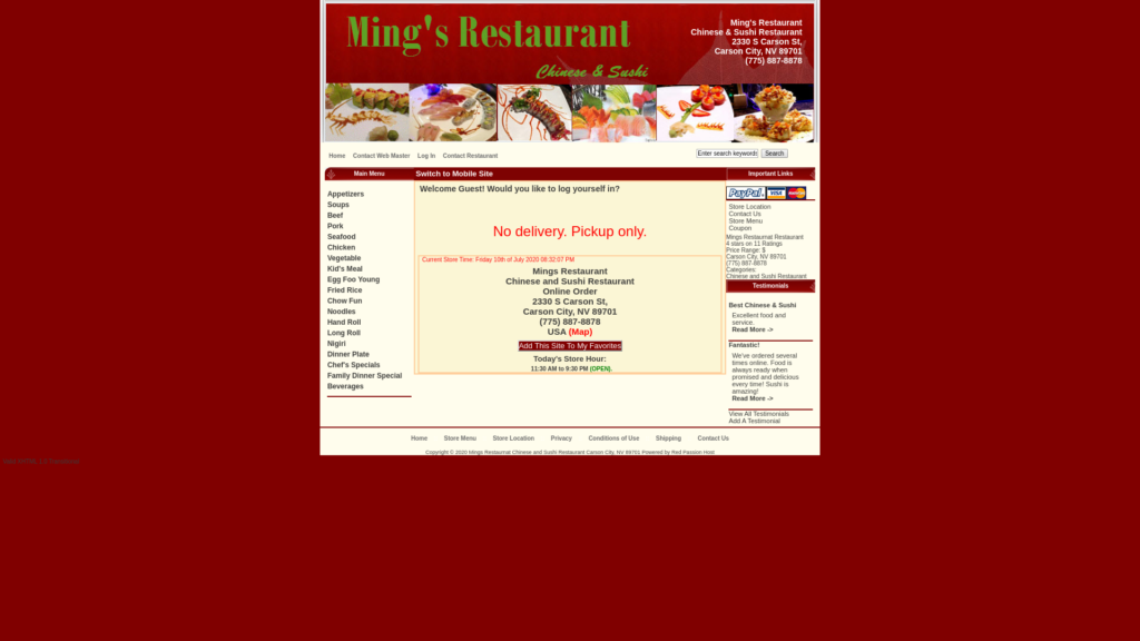 Ming's Restaurant Chinese & Japanese Restaurant Carson City, NV 89701! Online Order, Food Delivery Restaurant