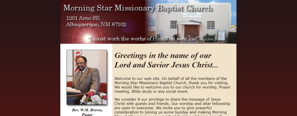 On behalf of all the members of the Morning Star Missionary Baptist Church, thank you for visiting. We would like to welcome you to our church for worship, Prayer meeting, Bible study or any social event.