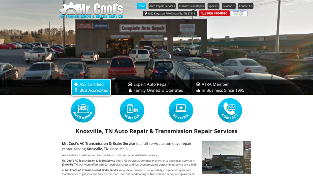 Mr. Cool’s AC Transmission & Brake Service offers full-service automotive maintenance and repair services in Knoxville, TN. Our team offers ASE Certified Mechanics and has been providing outstanding service since 1995.