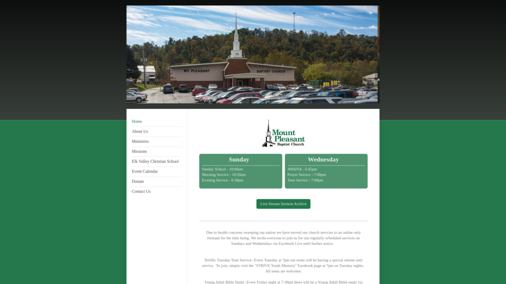 MT. PLEASANT BAPTIST CHURCH is a faith-based community in Elkview that believes in strong communities where people help each other
