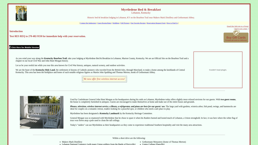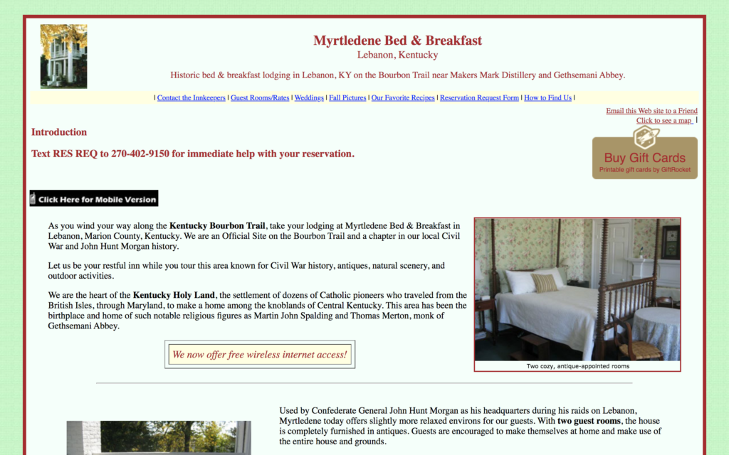 Lebanon, Kentucky Bed and Breakfast Inn - Myrtledene Bed & Breakfast - Lebanon Lodging - Introduction