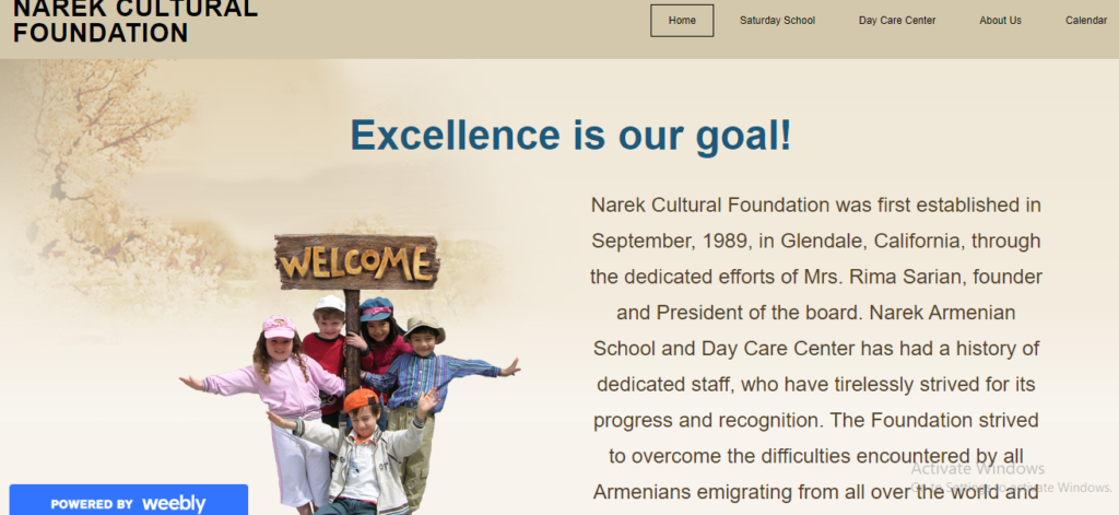Narek Cultural Foundation was first established in September, 1989, in Glendale, California, through the dedicated efforts of Mrs. Rima Sarian, founder and President of the board. Narek Armenian School and Day Care Center has had a history of dedicated staff, who have tirelessly strived for its progress and recognition. The Foundation strived to overcome the difficulties encountered by all Armenians emigrating from all over the world and prepare educational grounds for Armenians away from their homeland.