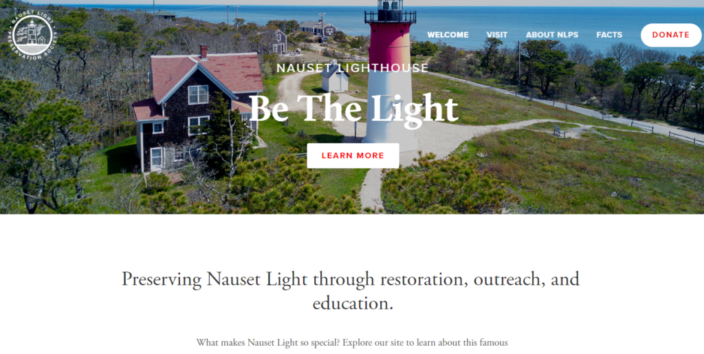 Nauset Light, the most well-known and photographed lighthouse on Cape Cod, is located within the boundaries of the Cape Cod National Seashore. It is an important part of Eastham’s cultural and maritime history. In 1993 a group of citizens in Eastham formed the Nauset Light Preservation Society (NLPS), a non-profit volunteer organization whose original mission was to rescue the lighthouse. Through the successful efforts of the NLPS the Nauset Lighthouse was moved approximately 300 feet back from the edge of a sixty-foot high eroding cliff in 1996. Though no longer under the auspices of the United States Coast Guard, Nauset Light serves as a private aid to navigation used by the fishing fleets and small recreational boaters who navigate close to the shore.