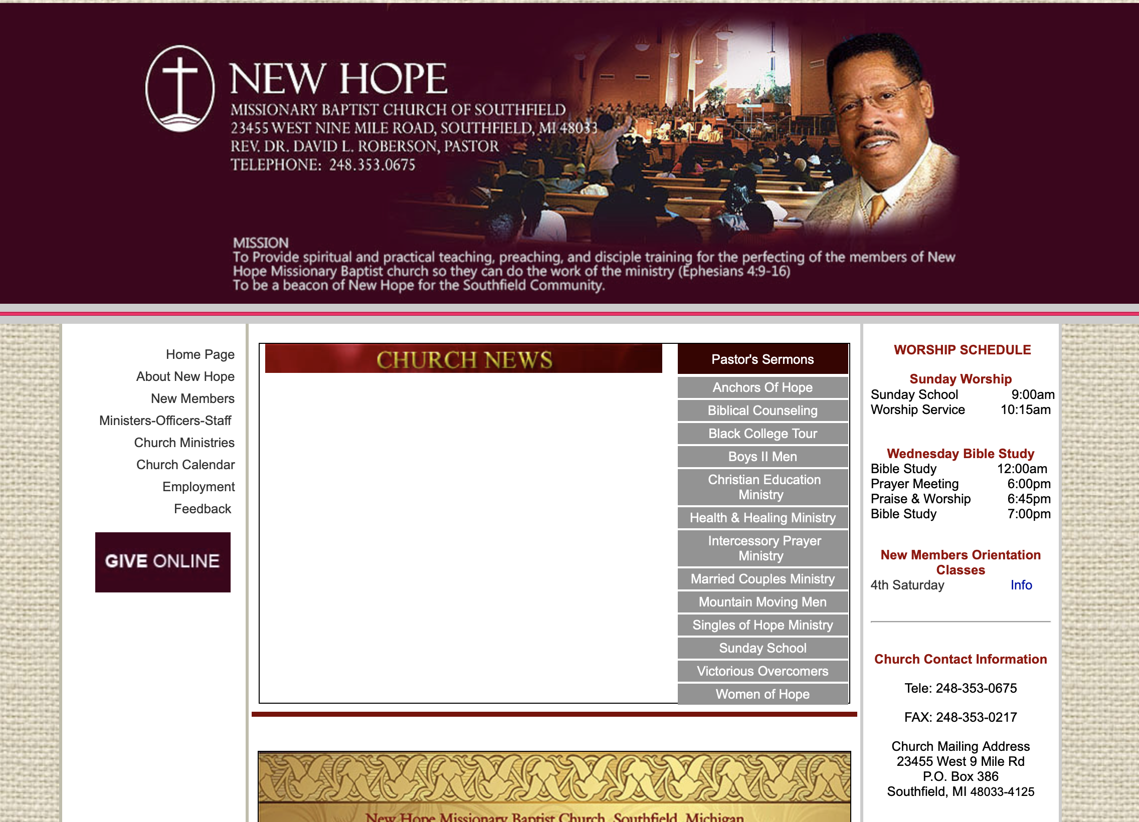 NEW HOPE MISSIONARY BAPTIST CHURCH OF SOUTHFIELD