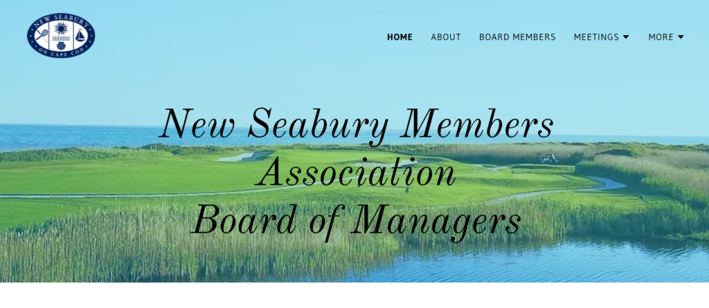 The New Seabury Board of Managers welcomes you to our member website. The site includes an overview of the Boards roll representing the interests of the New Seabury Country Club membership, profiles of the current Board members, up-to-date information regarding issues and policies that impact members, as well information on activities and events taking place throughout the year in our special community.