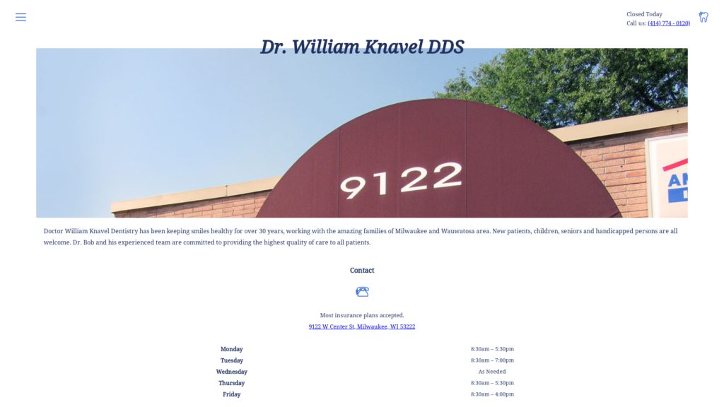 Doctor William Knavel Dentistry has been keeping smiles healthy for over 30 years, working with the amazing families of Milwaukee and Wauwatosa area. New patients, children, seniors and handicapped persons are all welcome. Dr. Bob and his experienced team are committed to providing the highest quality of care to all patients.