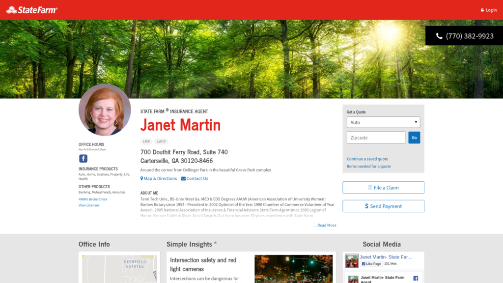 Call (770) 382-9923 for life, home, car insurance and more. Get a free quote from State Farm Agent Janet Martin in Cartersville, GA