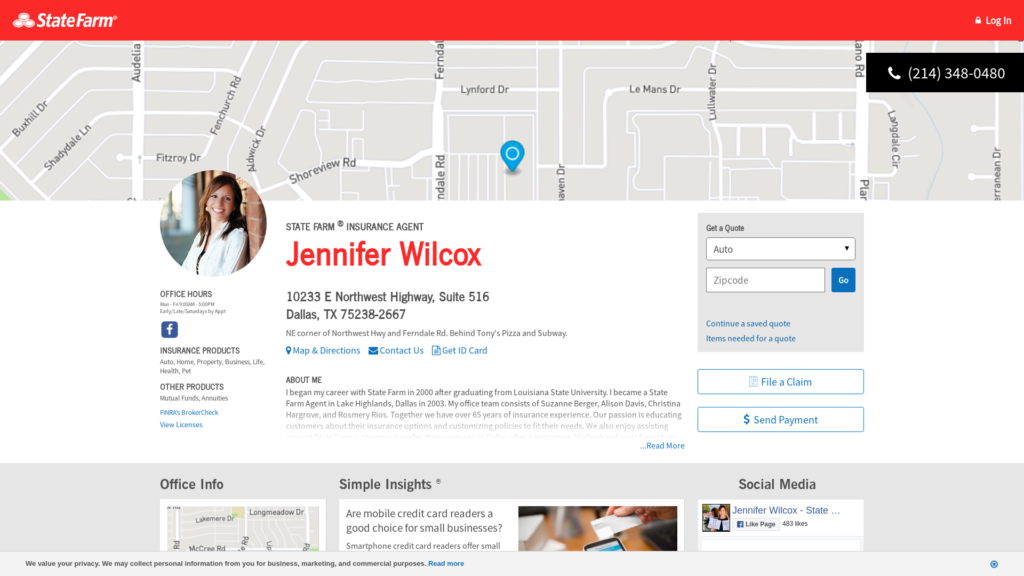 Call (214) 348-0480 for life, home, car insurance and more. Get a free quote from State Farm Agent Jennifer Wilcox in Dallas, TX