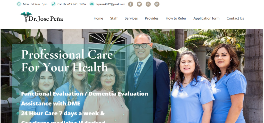 Jose R. Pena MD born and raised in San Juan Puerto Rico. He went to school at Universidad Central Del Caribe. He then went to New York to complete his residency and Geriatrics Subspecialty. He stayed working in New York for 7 years and during that time he designed multiple novel geriatrics programs that allowed him to become a distinguished leader in the community and a pioneer in the field of geriatrics. He then proceeded to San Diego CA. to start his own practice in Internal Medicine and Geriatrics. He has been here for the last 19 years and he has also become a leader in healthcare in the South Bay of San Diego and he has earned innumerable honors and awards.