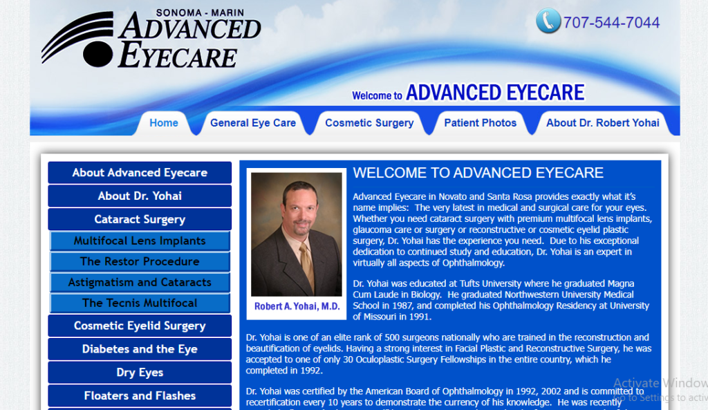Advanced Eyecare in Novato and Santa Rosa provides exactly what it’s name implies: The very latest in medical and surgical care for your eyes. Whether you need cataract surgery with premium multifocal lens implants, glaucoma care or surgery or reconstructive or cosmetic eyelid plastic surgery, Dr. Yohai has the experience you need. Due to his exceptional dedication to continued study and education, Dr. Yohai is an expert in virtually all aspects of Ophthalmology.