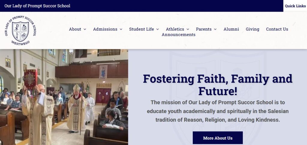 The mission of Our Lady of Prompt Succor School is to educate youth academically and spiritually in the Salesian tradition of Reason, Religion, and Loving Kindness.