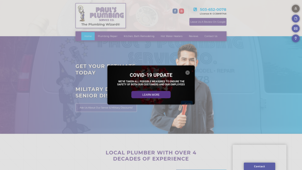 Award-winning Paul’s Plumbing Service Co. is locally owned and operated, serving Milwaukie and the Portland metro area since 1989. We are a licensed bonded, insured, and provide excellent, prompt and courteous plumbing servicesfor residential and commercial customers.