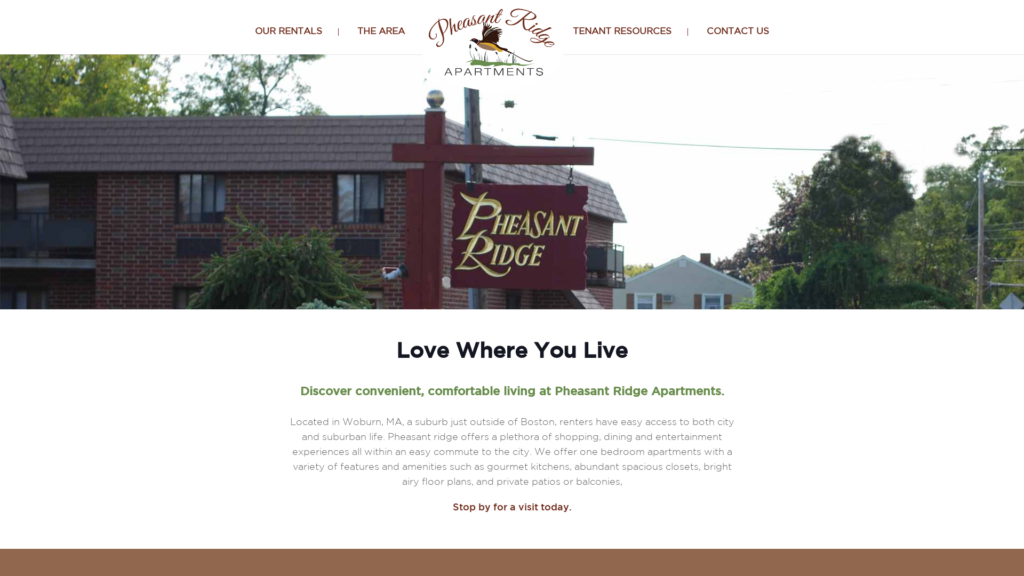Located in Woburn, MA, a suburb just outside of Boston, renters have easy access to both city and suburban life. Pheasant Ridge offers a plethora of shopping, dining and entertainment experiences all within an easy commute to the city. We offer one-bedroom apartments with a variety of features and amenities such as gourmet kitchens, abundant spacious closets, bright airy floor plans, and private patios or balconies.