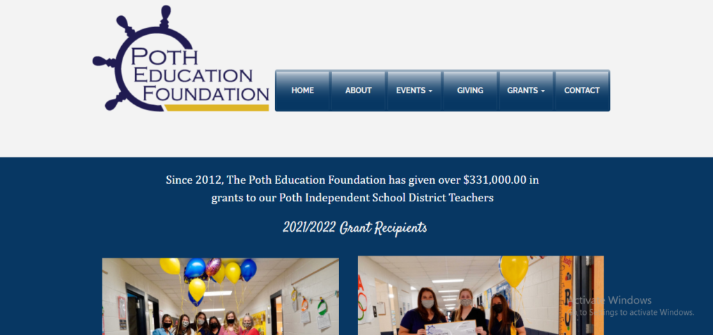 Founded in 2012, the Poth Education Foundation is a non-for-profit, 501(c)3. Led by community volunteers, we are “charting the course for excellence”. The mission of the foundation is to partner with the community to generate and distribute resources to enrich teaching, inspire learning and maximize opportunities for all students in the Poth ISD. Together, let us continue in helping Poth ISD be a place where all students can learn, grow and thrive.