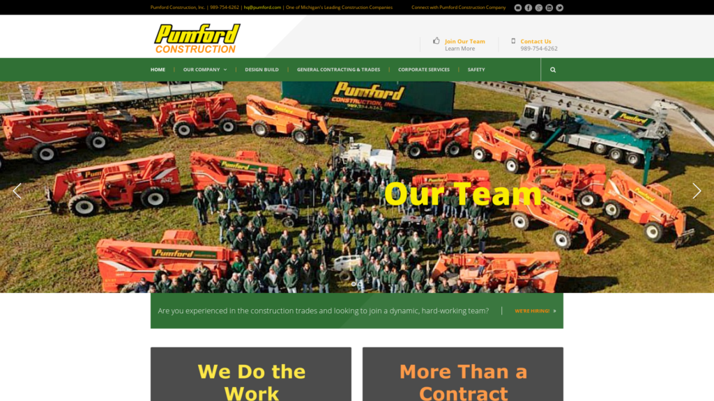 Pumford Construction is a full-service construction company proudly located in Michigan’s Great Lakes Bay Region. We provide an array of construction services including In-House Skilled Trades, General Contracting, Green Building, and Design-Build.