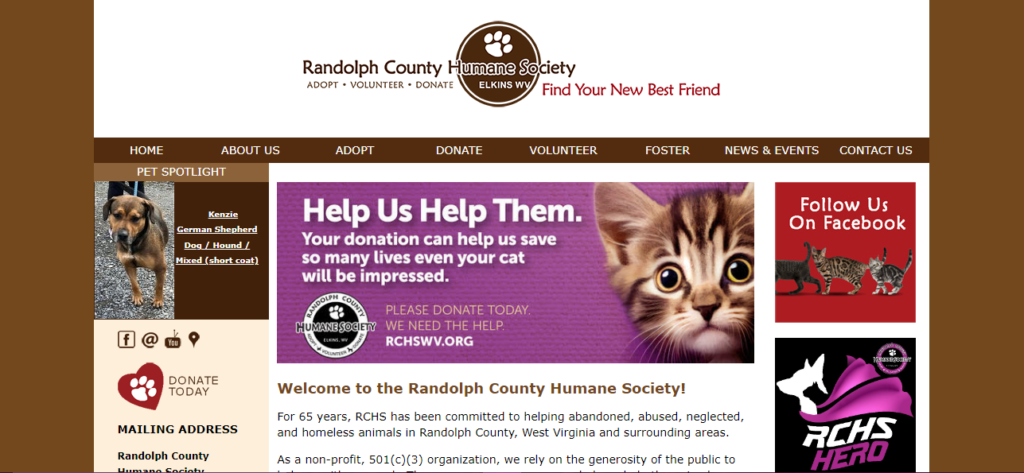 For 65 years, RCHS has been committed to helping abandoned, abused, neglected, and homeless animals in Randolph County, West Virginia and surrounding areas.