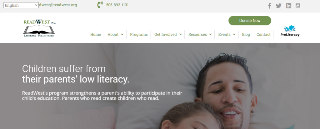ReadWest, Inc. is a non-profit literacy agency providing one-to-one tutoring by trained volunteers. ReadWest is an Accredited Affiliate of ProLiteracy. Sixteen standards of quality are continually achieved to maintain ProLiteracy accreditation. Since its inception, ReadWest has provided over 4,000 adults with literacy services and is expanding to meet the growing needs of our community. ReadWest has served Bernalillo and Sandoval Counties for 34 years!