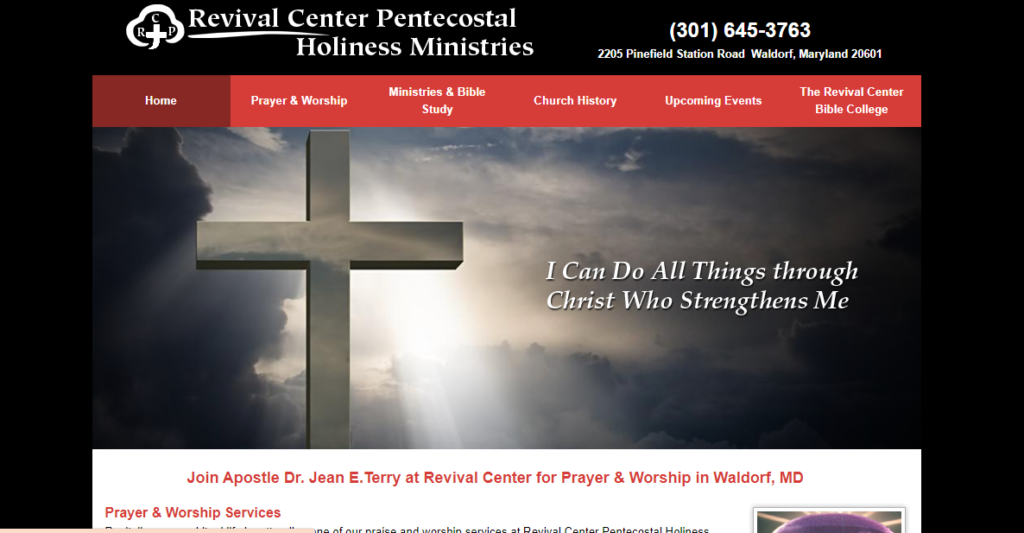 Join us in the service of the Lord at Revival Center Pentecostal Holiness Ministries, in Waldorf, MD, where our mission is to fulfill the Great Commission by preaching the Gospel in all the world. Through prayer and worship we are strengthened to move forward to accomplish this task.
