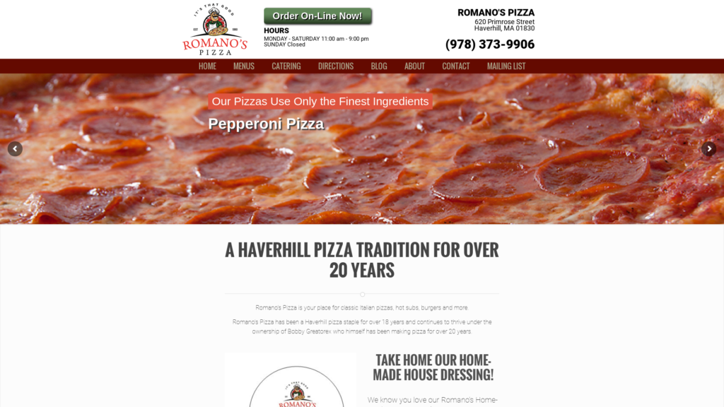 With two decades of history, Romano’s Pizzeria is Haverhill’s go-to restaurant for artisanal pizza and friendly service.