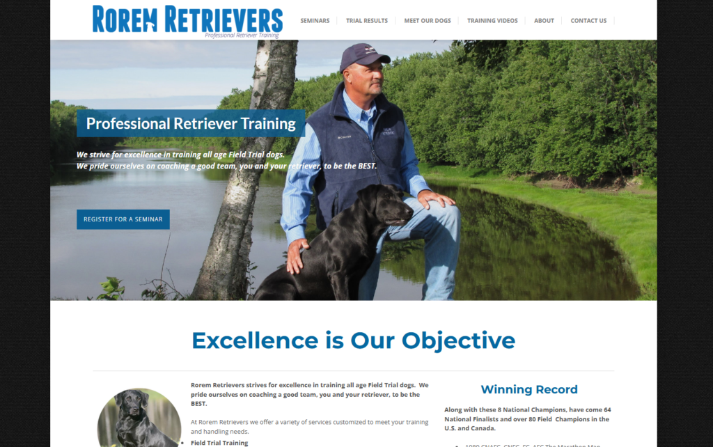 During the early years at Rorem Retrievers, Dave and Paulette’s children, Ty and Seth both worked for the business by throwing birds, shooting flyers, and caring for the dogs. After college, Ty returned to the family business and is now training and handling full time.
